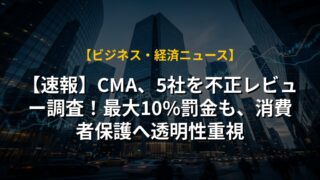 【速報】CMA、5社を不正レビュー調査!最大10%罰金も、消費者保護へ透明性重視