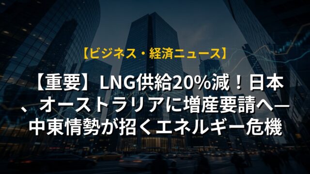 【重要】LNG供給20%減!日本、オーストラリアに増産要請へ—中東情勢が招くエネルギー危機