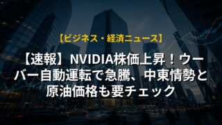 【速報】NVIDIA株価上昇!ウーバー自動運転で急騰、中東情勢と原油価格も要チェック
