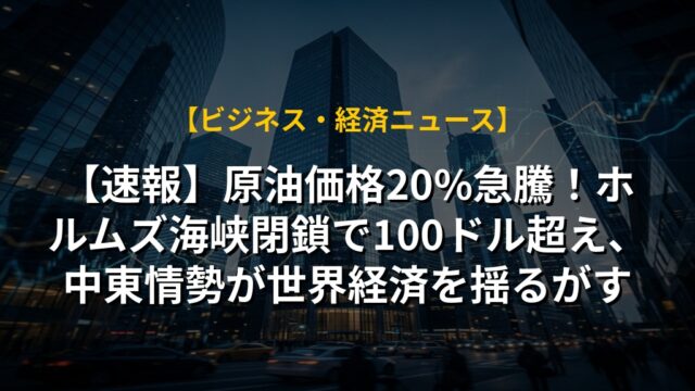 【速報】原油価格20%急騰!ホルムズ海峡閉鎖で100ドル超え、中東情勢が世界経済を揺るがす