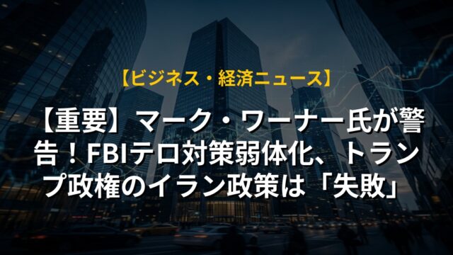 【重要】マーク・ワーナー氏が警告!FBIテロ対策弱体化、トランプ政権のイラン政策は「失敗」