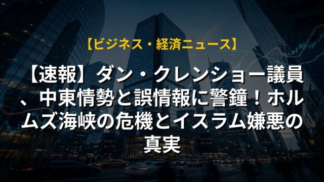 【速報】ダン・クレンショー議員、中東情勢と誤情報に警鐘!ホルムズ海峡の危機とイスラム嫌悪の真実