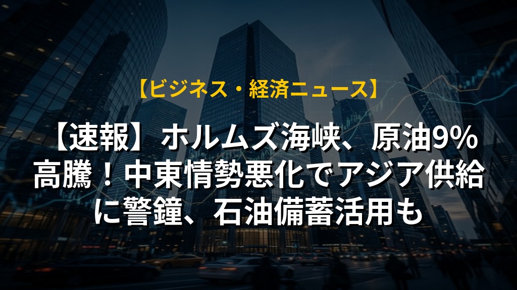 【速報】ホルムズ海峡、原油9%高騰!中東情勢悪化でアジア供給に警鐘、石油備蓄活用も