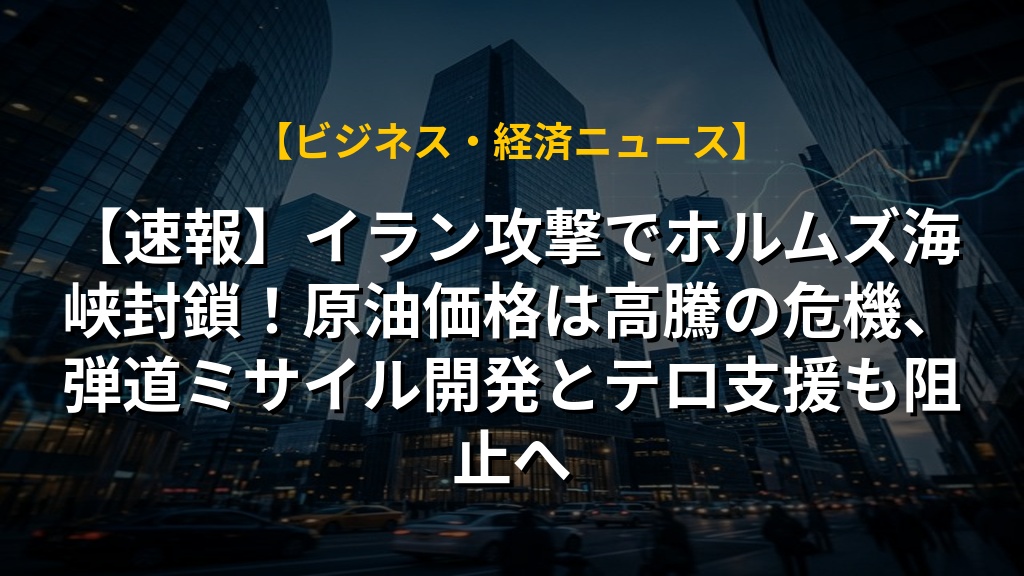 【速報】イラン攻撃でホルムズ海峡封鎖!原油価格は高騰の危機、弾道ミサイル開発とテロ支援も阻止へ