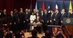 トランプ大統領は、各国首脳が「我々の半球における無法をこれ以上容認しない」という共通認識を持っていると述べた。