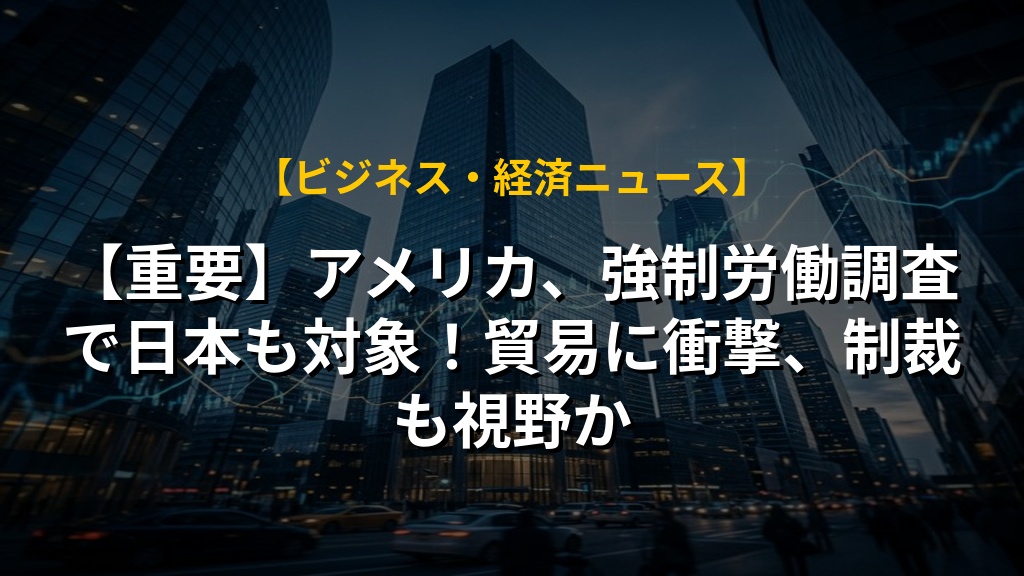 - アメリカ合衆国は、強制労働問題への対応を理由に、日本を含む各国に対して不公正な貿易慣行の調査を開始。