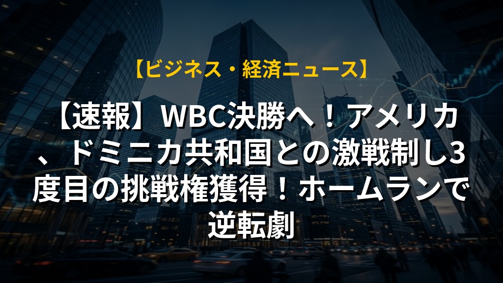 解説:記事の冒頭で「アメリカ合衆国が、ワールド・ベースボール・クラシック(WBC)の準決勝でドミニカ共和国を2対1で破り、決勝進出に王手をかけた。」と記載されています。