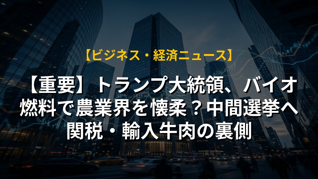 - 中間選挙を控え、トランプ政権は農業界の支持を維持しようとしており、関税政策や輸入牛肉問題が課題に。