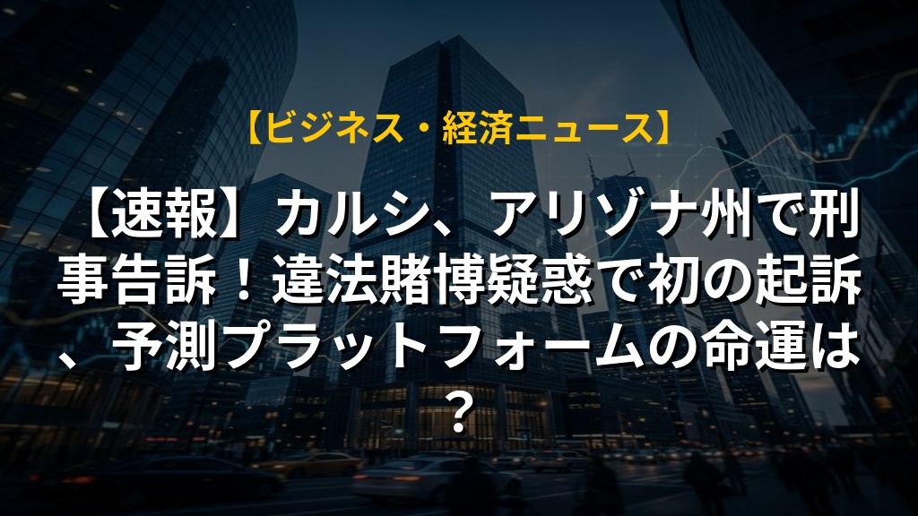 【速報】カルシ、アリゾナ州で刑事告訴!違法賭博疑惑で初の起訴、予測プラットフォームの命運は?