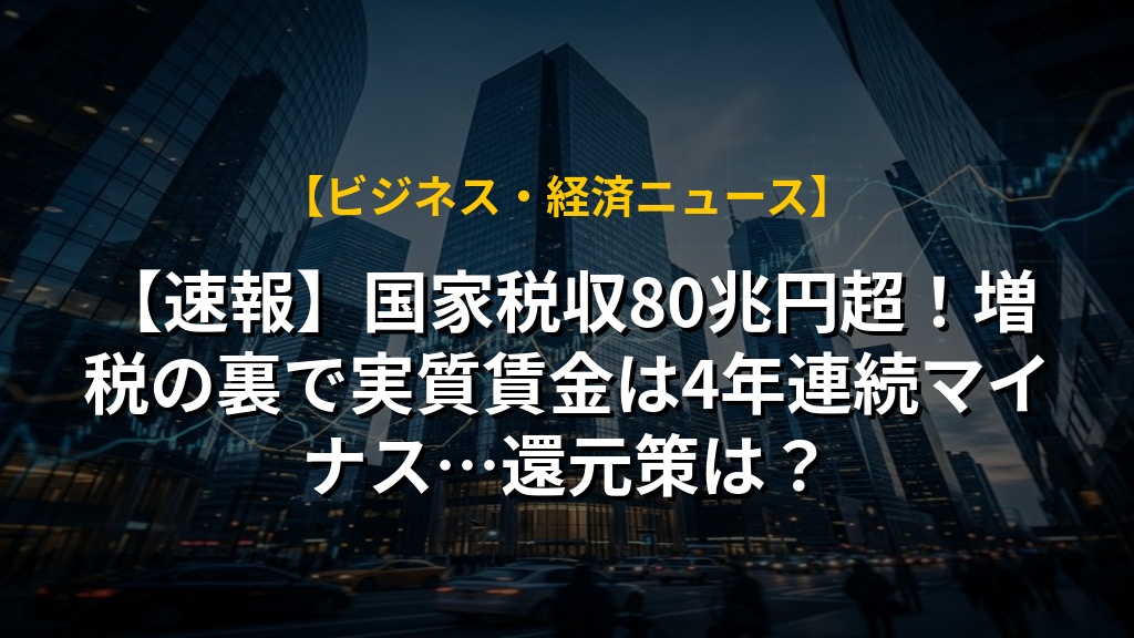 - 税収は過去最高だが、実質賃金は4年連続マイナス。国民の生活実感との乖離が、還元策の議論を加速させている。