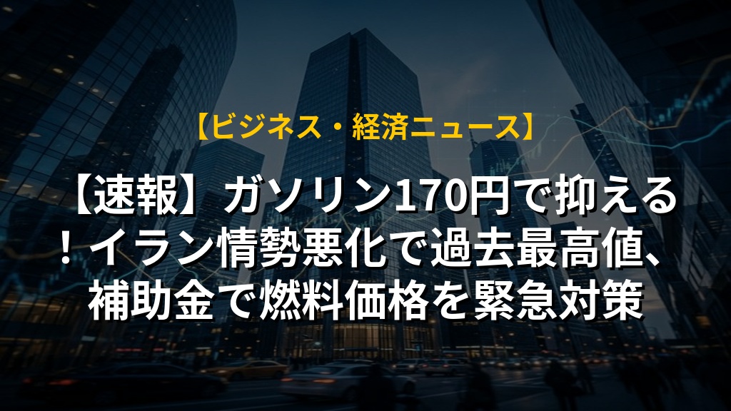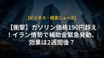 - イラン情勢悪化で記録的な高騰が続くガソリン価格を、政府が1リットルあたり170円程度に抑制するため補助金を導入。