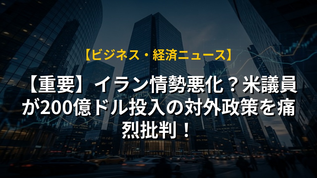 【重要】イラン情勢悪化?米議員が200億ドル投入の対外政策を痛烈批判!