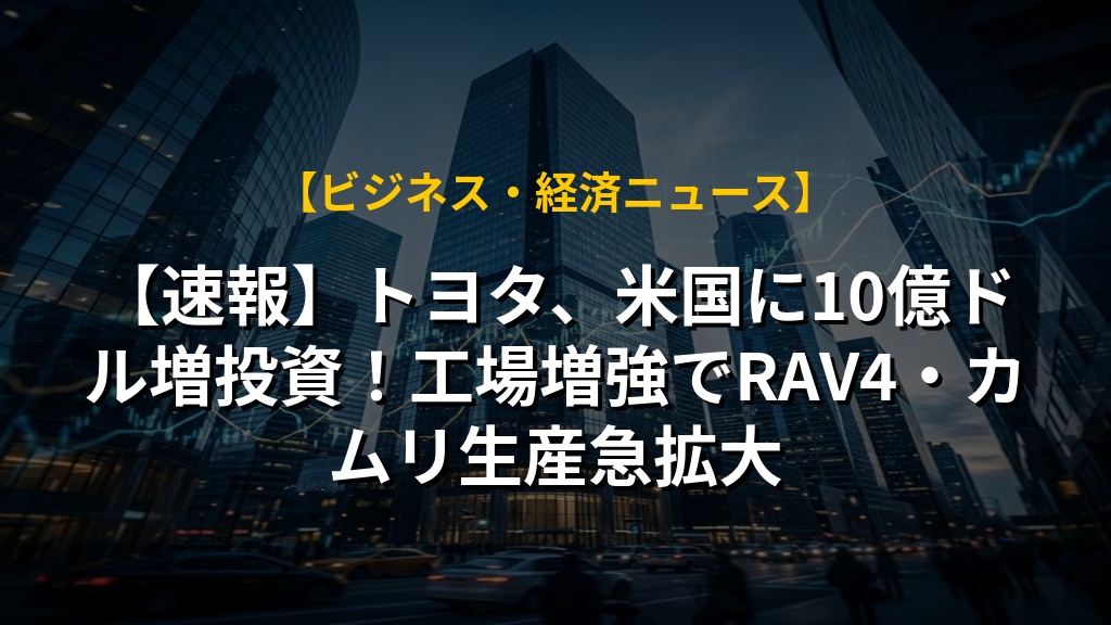 トヨタ自動車が、アメリカ国内の2工場に10億ドルを投資し、主力車種の生産能力を増強すると発表しました。これは、今後5年間で最大100億ドルを投じる計画の一環で、アメリカ市場への強いコミットメントを示していますね。