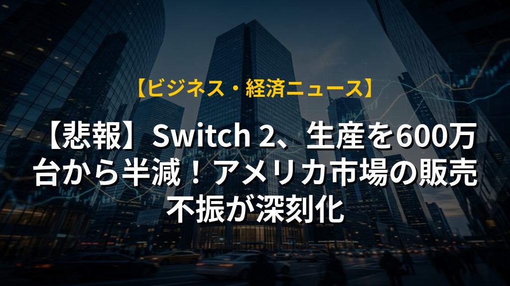 任天堂の新型ゲーム機「Switch 2」の生産が大幅に減らされることになりました。6月の発売当初は好調でしたが、450ドルの価格設定がネックとなり、特にアメリカ市場で期待通りの売れ行きを見せていないようです。