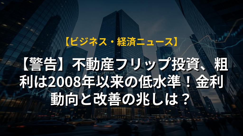 不動産フリップ投資は、高金利や物件価格の高騰により、収益性が大きく低下している状況です。2025年のフリップ件数は2020年以来の低水準となる見込みで、投資家が得る利益も減少しています。