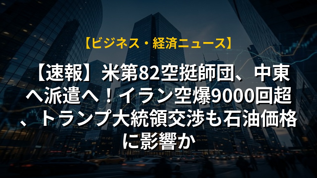 【速報】米第82空挺師団、中東へ派遣へ!イラン空爆9000回超、トランプ大統領交渉も石油価格に影響か