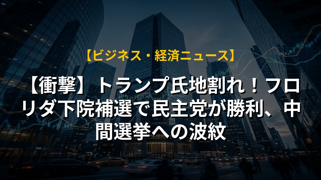 フロリダ州下院補選で民主党候補が勝利し、トランプ大統領の地盤にも変化の兆しが見えてきました。物価高騰への不満が、これまでの共和党支持層の票心にも影響を与えたと考えられます。民主党は今回の結果を中間選挙に向けた好機と捉え、議席奪還を目指すでしょう。ただし、過去の議席喪失数は多く、道のりは険しいものとなりそうです。今後の経済状況や両党の政策が、有権者の判断を左右する重要なポイントとなるでしょう。