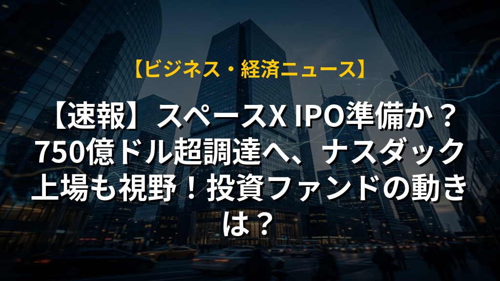 スペースXが数日以内にIPO(新規株式公開)の準備を進めているというニュースですね。750億ドルを超える資金調達を目指す可能性があり、宇宙開発という分野への投資家の関心が高まっています。すでに多くのファンドがスペースXの株式を保有しており、IPO報道で関連銘柄の株価も上昇しています。