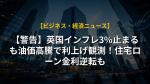 - 英国の住宅ローン金利が上昇。 中東情勢を背景に借入コストが増加し、過去19ヶ月ぶりの高水準に。金利引き上げ観測も。