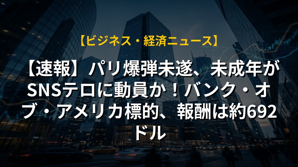 【速報】パリ爆弾未遂、未成年がSNSテロに動員か!バンク・オブ・アメリカ標的、報酬は約692ドル