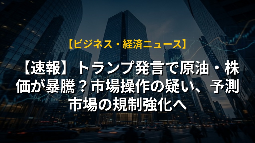 【速報】トランプ発言で原油・株価が暴騰?市場操作の疑い、予測市場の規制強化へ