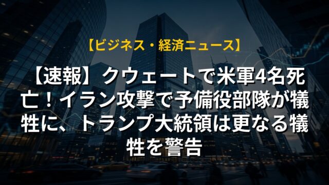 【速報】クウェートで米軍4名死亡!イラン攻撃で予備役部隊が犠牲に、トランプ大統領は更なる犠牲を警告