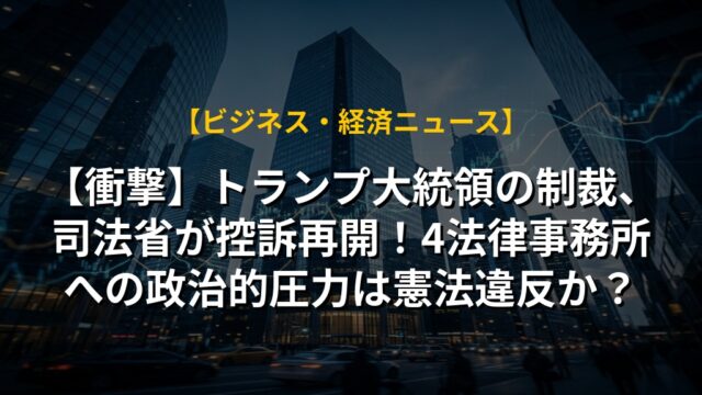 【衝撃】トランプ大統領の制裁、司法省が控訴再開!4法律事務所への政治的圧力は憲法違反か?