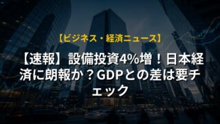 【速報】設備投資4%増!日本経済に朗報か?GDPとの差は要チェック