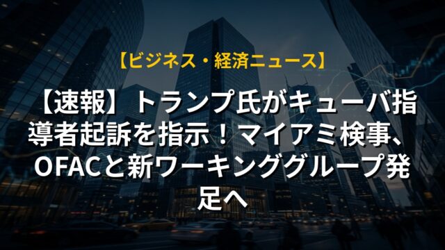 【速報】トランプ氏がキューバ指導者起訴を指示!マイアミ検事、OFACと新ワーキンググループ発足へ