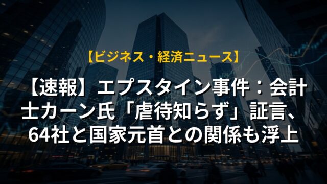 【速報】エプスタイン事件:会計士カーン氏「虐待知らず」証言、64社と国家元首との関係も浮上