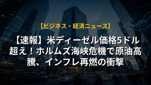 【速報】米ディーゼル価格5ドル超え!ホルムズ海峡危機で原油高騰、インフレ再燃の衝撃