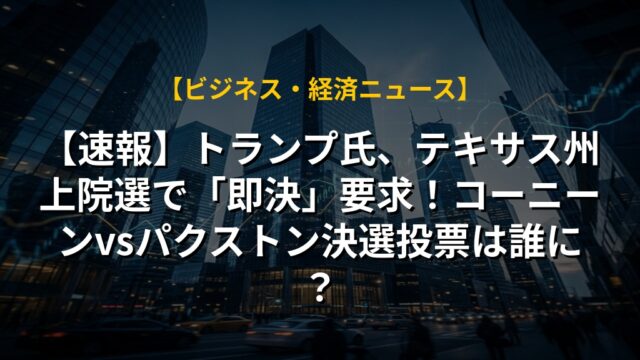 【速報】トランプ氏、テキサス州上院選で「即決」要求!コーニーンvsパクストン決選投票は誰に?