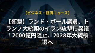【衝撃】ランド・ポール議員、トランプ大統領のイラン攻撃に異議!2000億円阻止、2028年大統領選へ