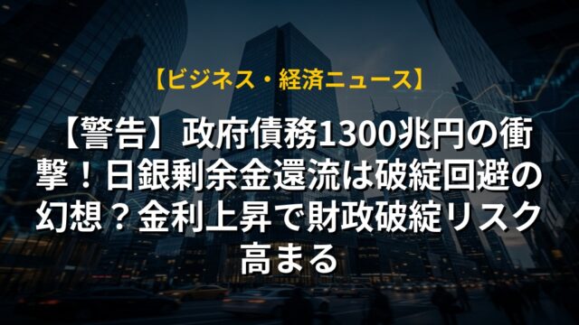 【警告】政府債務1300兆円の衝撃!日銀剰余金還流は破綻回避の幻想?金利上昇で財政破綻リスク高まる