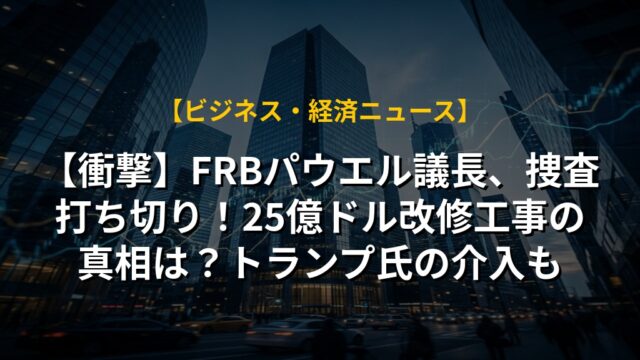 【衝撃】FRBパウエル議長、捜査打ち切り!25億ドル改修工事の真相は?トランプ氏の介入も