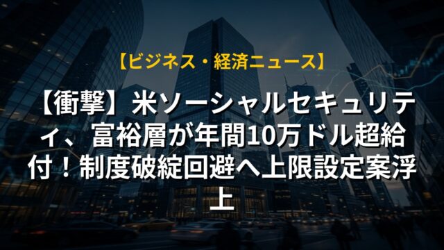 【衝撃】米ソーシャルセキュリティ、富裕層が年間10万ドル超給付!制度破綻回避へ上限設定案浮上