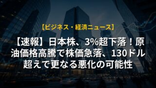 【速報】日本株、3%超下落!原油価格高騰で株価急落、130ドル超えで更なる悪化の可能性