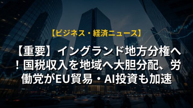 【重要】イングランド地方分権へ!国税収入を地域へ大胆分配、労働党がEU貿易・AI投資も加速