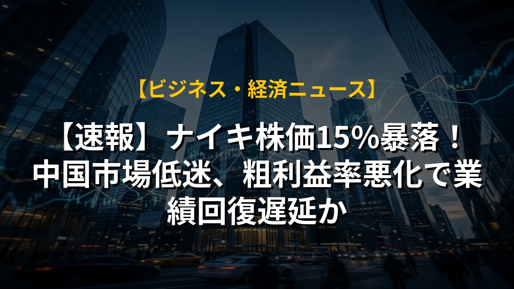 【速報】ナイキ株価15%暴落!中国市場低迷、粗利益率悪化で業績回復遅延か