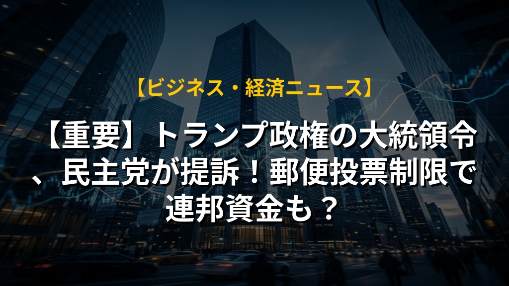 - ドナルド・トランプ政権の郵送投票介入を試みる大統領令に対し、民主党が提訴。連邦政府の権限乱用を主張。