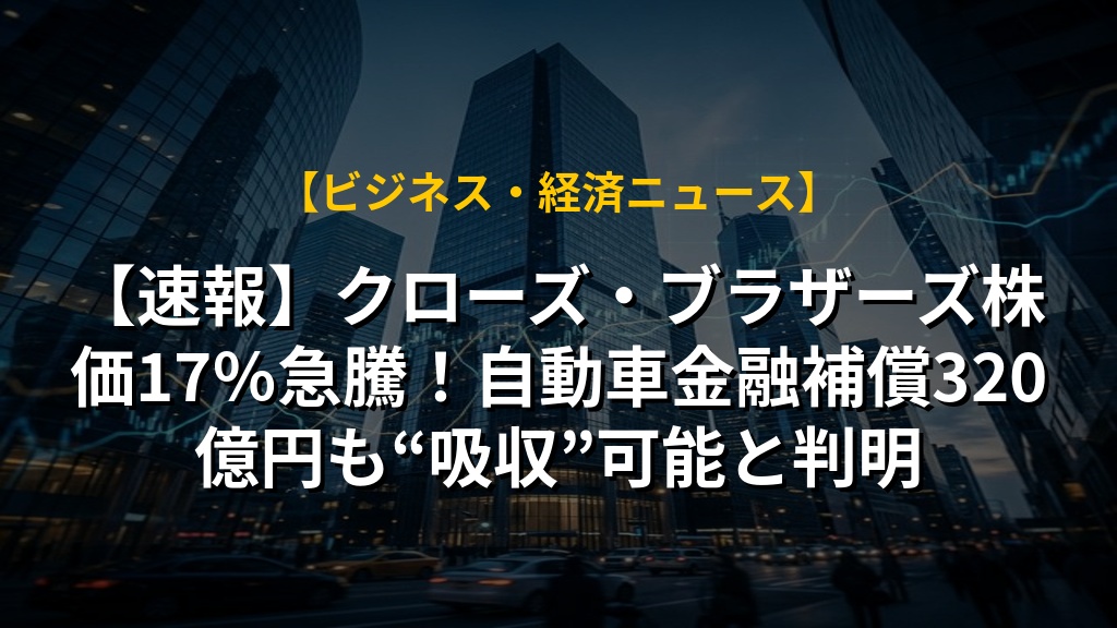 【速報】クローズ・ブラザーズ株価17%急騰!自動車金融補償320億円も“吸収”可能と判明の注目ポイントまとめ
