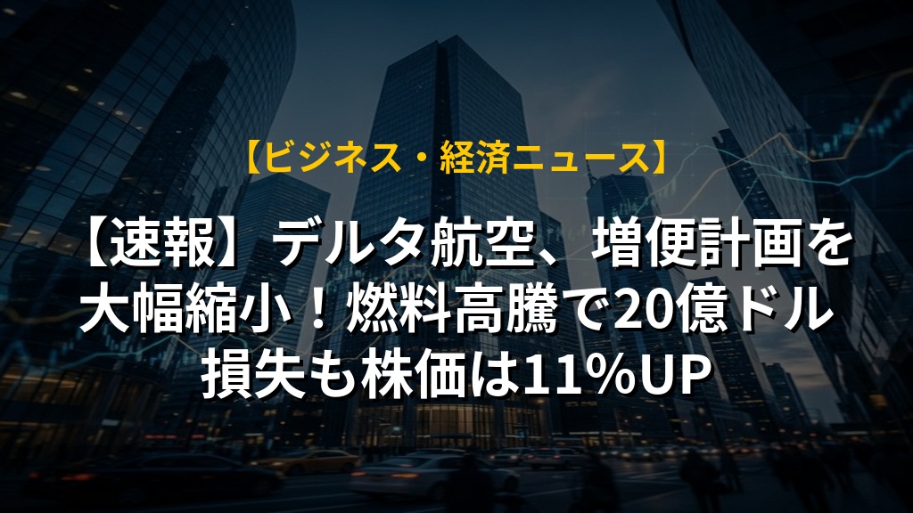 デルタ航空が、中東情勢の悪化による燃料価格高騰を受け、増便計画を大幅に縮小すると発表しました。株価は一時11%以上上昇しましたが、燃料費は20億ドル増の見込みです。