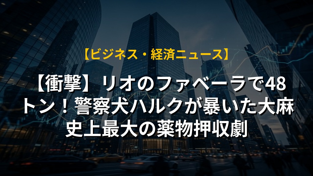 ブラジルのリオデジャネイロで、警察が史上最大級となる48トンのマリファナを摘発しました。きっかけは警察犬ハルクの活躍で、偶然の発見から今回の大きな成果につながったとのことです。犯罪組織にとっては約1000万ドル相当の損失となり、その経済力を改めて見せつけられました。