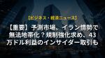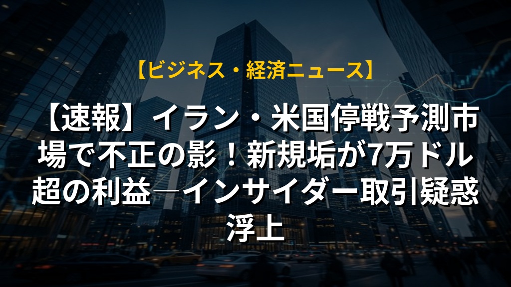 予測市場で、イラン・米国間の停戦に関する賭けで新規アカウントが巨額の利益を得ていることが明らかになりました。停戦交渉の兆候がない中での出来事であり、インサイダー情報利用の疑いが強まっています。議会では予測市場をインサイダー取引に含める法案も提出されており、規制強化の流れは避けられないでしょう。予測市場の透明性確保は、投資家保護のためにも急務です。今後の動向から目が離せません。
