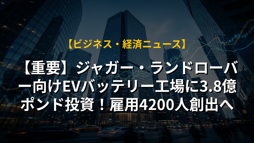 【重要】ジャガー・ランドローバー向けEVバッテリー工場に3.8億ポンド投資!雇用4200人創出へ