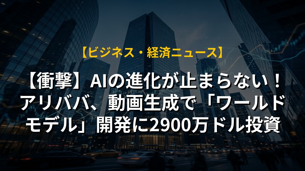 【衝撃】AIの進化が止まらない!アリババ、動画生成で「ワールドモデル」開発に2900万ドル投資