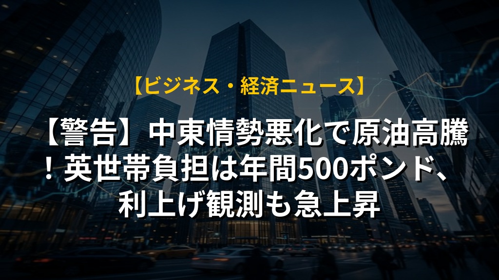 中東情勢の緊迫化でエネルギー価格が高騰し、世界経済への影響が懸念されます。イギリスでは、世帯あたり年間500ポンドの負担増となる見込みで、生活水準の低下が避けられない状況です。