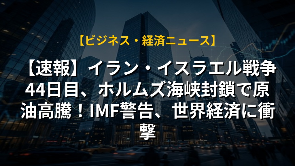 【速報】イラン・イスラエル戦争44日目、ホルムズ海峡封鎖で原油高騰!IMF警告、世界経済に衝撃