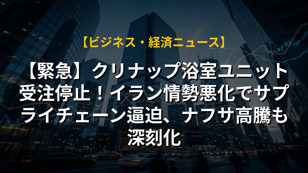 【緊急】クリナップ浴室ユニット受注停止!イラン情勢悪化でサプライチェーン逼迫、ナフサ高騰も深刻化