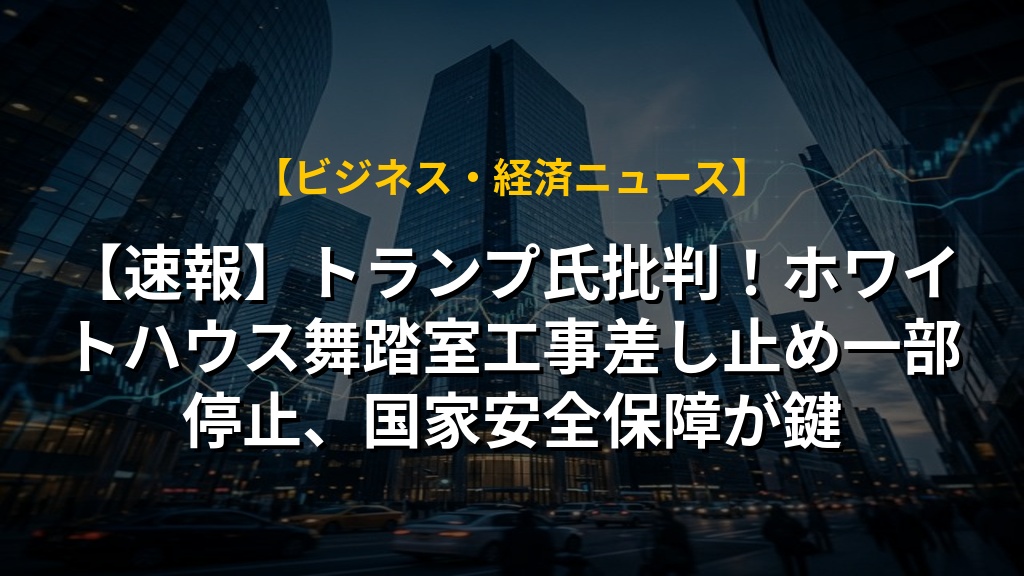 【速報】トランプ氏批判!ホワイトハウス舞踏室工事差し止め一部停止、国家安全保障が鍵